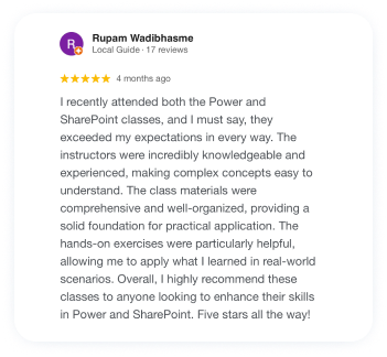 Receive in-depth instruction on PowerApps, Power Automate (Cloud), and SharePoint Online, covering essential concepts and practical applications.