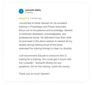 The course is taught by trainers with a minimum of 14+ years of industry experience, part of Eduzek’s team of over 350 top trainers across India.
